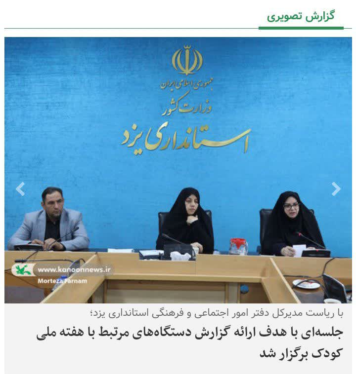 پنجشنبه ۱۲ مهرماه ۱۴۰۳ نشست هماندیشی دستگاههای مرتبط با برگزاری هفته ملی کودک با ریاست فاطمه کارگران در سالن حمیدیای استانداری یزد برگزار شد.