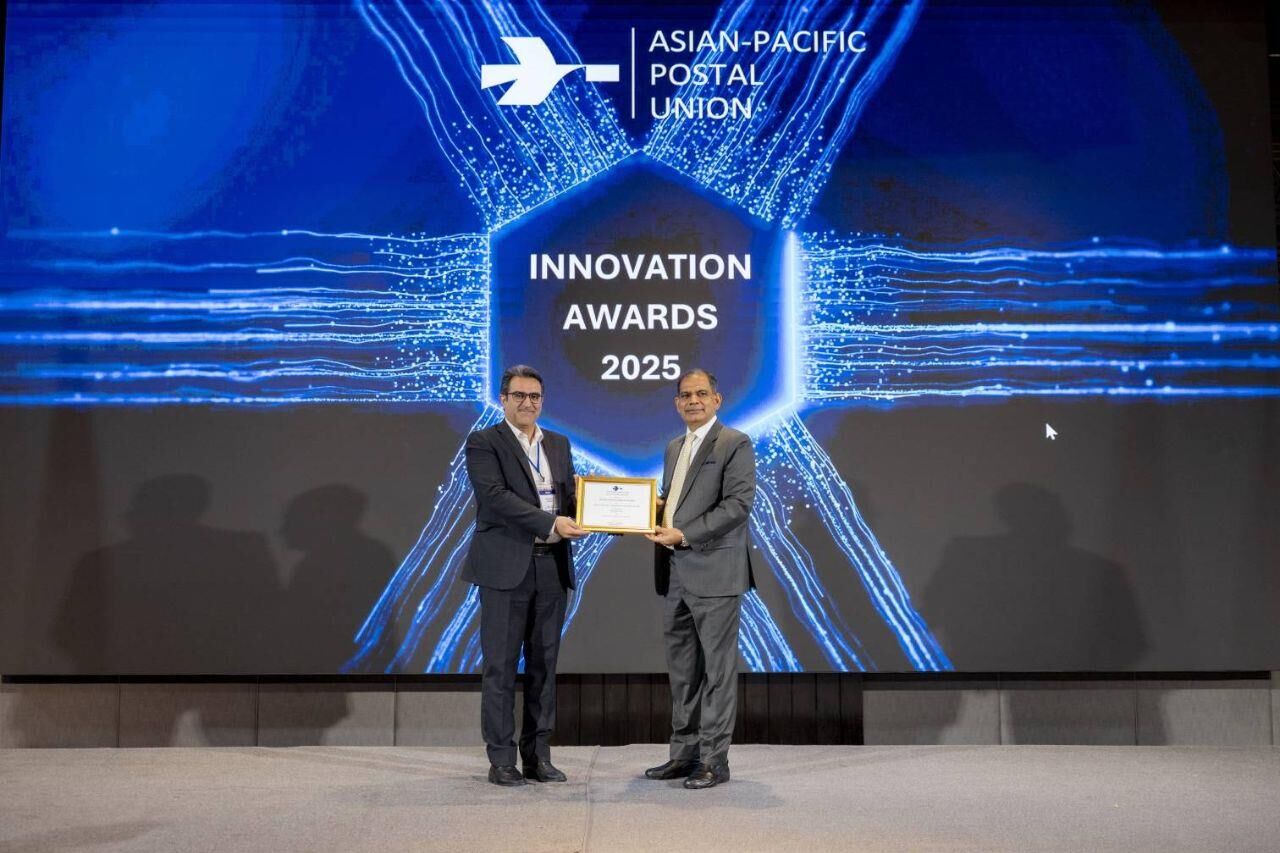 لوح تقدیر و جایزه نوآوری APPU توسط «وینایا پراکاش سینگ» مدیرکل اتحادیه پستی آسیا-اقیانوسیه، به محمد احمدی، معاون وزیر ارتباطات و مدیرعامل شرکت ملی پست ایران، اهدا شد.