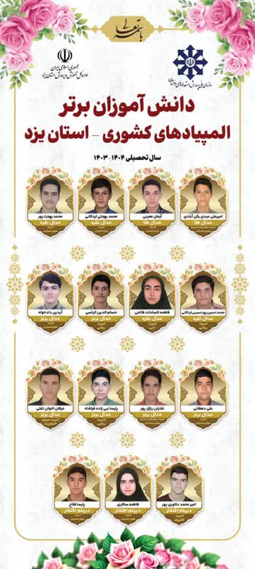 اینجانب، این موفقیت ارزشمند را به این دانشآموزان عزیز، خانوادههای گرامیشان، معلمان دلسوز، مدیران مدارس و مسئولان آموزش و پرورش استان یزد تبریک عرض میکنم و از خداوند متعال برای آنان مسیرهای روشنتر، درخششهای بینالمللی و آیندهای سرشار از علم، ایمان و خدمت به میهن اسلامی را مسئلت دارم.