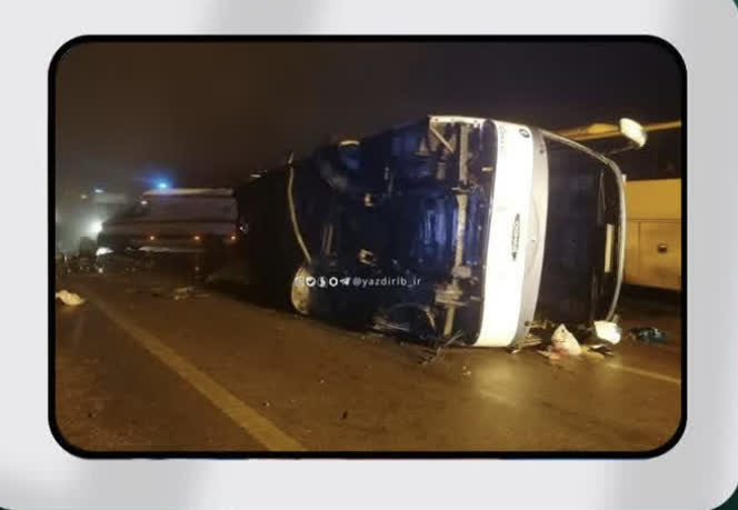 واژگونی اتوبوس در محور یزد به طبس ۱۰ فونی بر جا گذاشت
