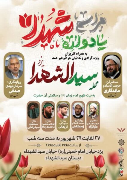 به گزارش روابط عمومی ستاد مردمی دیه استان یزد؛ هجدهمین یادواره لاله های خونین گرامیداشت شهدای محله حضرت سید الشهدا(ع) به همراه گلریزان مهدوی ویژه