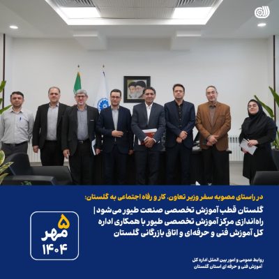 به گزارش افق امروز : به نقل از روابط عمومی اداره کل آموزش فنی و حرفه ای استان گلستان، کرایلو مدیرکل آموزش فنی و حرفهای